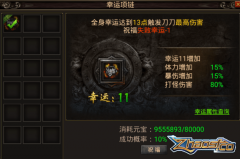 首先看到的是找sf网站变态幸运项链升级,幸运项链介绍:幸运幸运最高可提升至15,幸运4点之后几率失败,失败后会降低1点幸运,幸运10点之后每点幸运附加,伤害提升,体力提升,幸运可以免费转移至其他项链。每次升级需要:200000元宝。切换至转移幸运:有新...