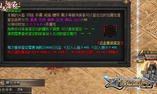 强化装备是除了提升装备等级之外唯一的提升属性的方式,虽然在很多游戏里强化装备的形式多种多样,不过在zhaosf超变传奇这款游戏中,最为核心的还是装备鉴定。这种强化模式也算得上是传奇系列游戏中比较经典的内容,而且作为为数不多的强化项目,装备鉴定能为我们提供的收益还是相当可观的。