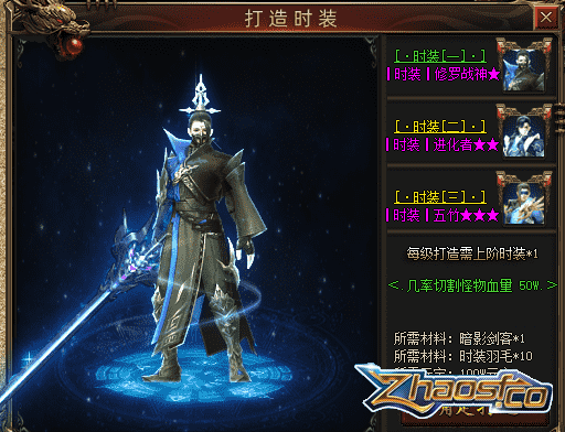 “钢铁侠·皮肤”,基础属性,防御/魔防/攻击/魔法/道术:588-588,元素属性:暴击几率增加+6%,物理伤害减少+6%,增加目标爆率+6%,单件触发:全属性+7%,技能减伤+6%,专属属性:打怪伤害+30%。合成需要:赤狐皮料*600。